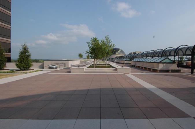 remedial waterproofing project undertaken in 1995-1998, eventually failed. Water from the park leaked down and into the office spaces. CRESG served as the project manager for the design of the new rooftop, waterproofing, and construction of the remedial work.