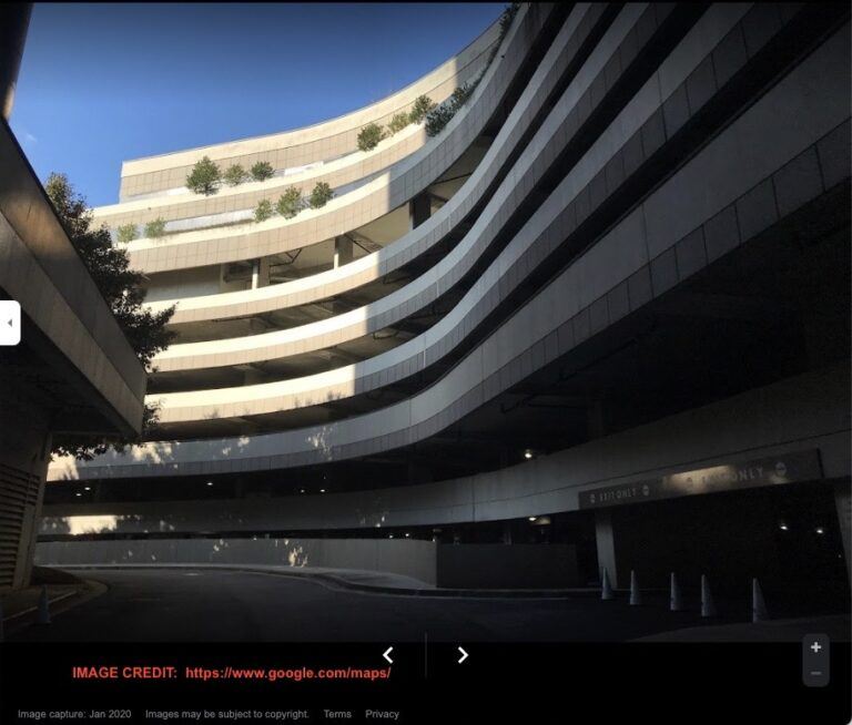 The garden building consisted of 7 floors of parking, covered by 2 – 50K SF floors of Class A office space, topped by an elevated park including trees and grass. The limited