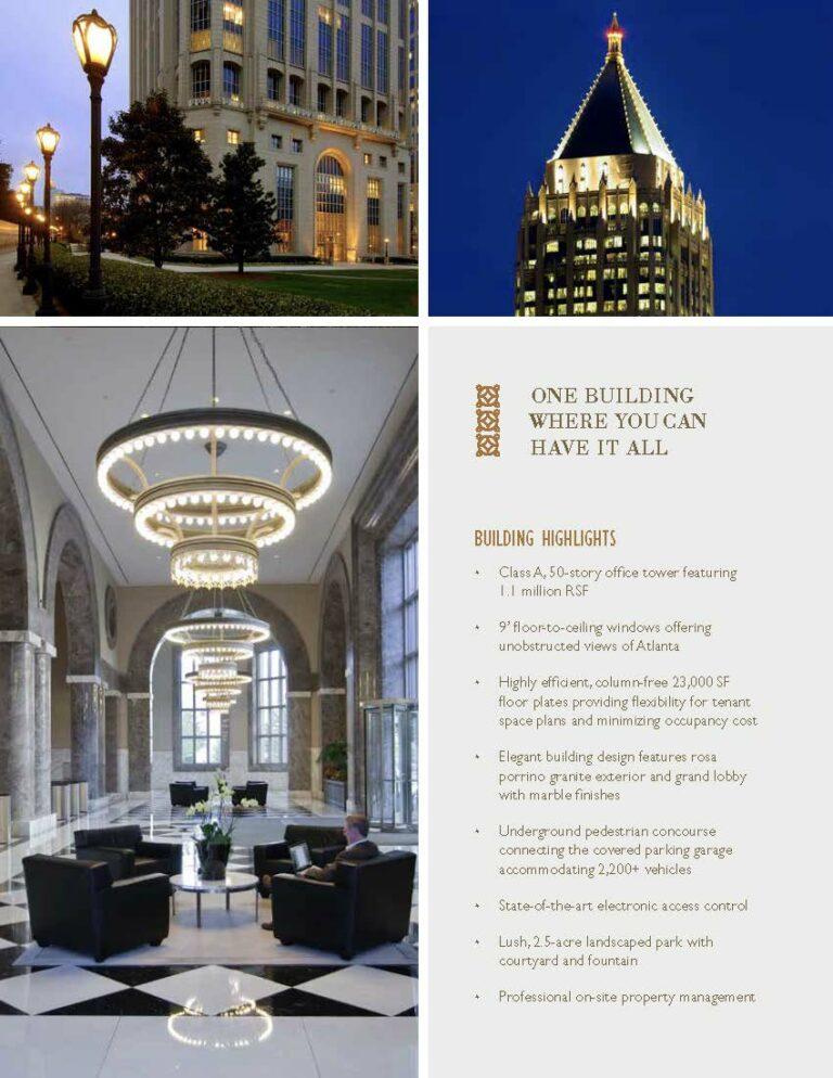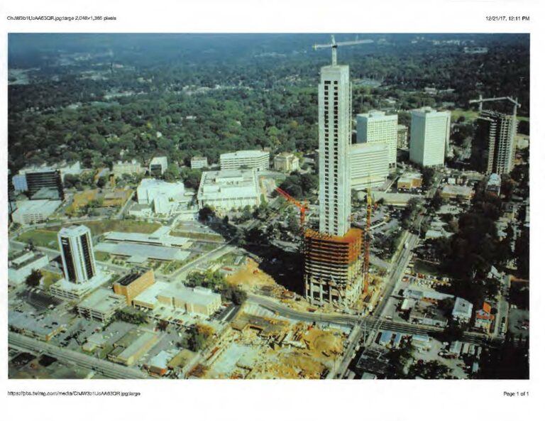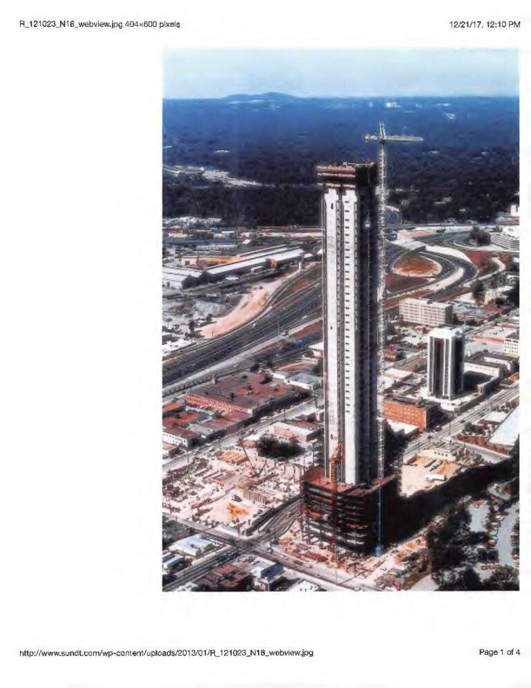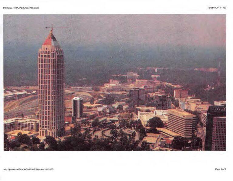 “It is the third-tallest skyscraper in Atlanta, reaching a height of 820 feet (250 m) with 50 stories of office space with a total building area of 1,187,676 sq. ft.. When the slender concrete core was completed in October 1986, it was the tallest slipformed skyscraper in the country. It was completed in 1987 and remained the tallest building in Atlanta until 1992. It was also the tallest building in the southeastern U.S. at the time of completion, surpassing the Southeast Financial Center in Miami.” Wikipedia